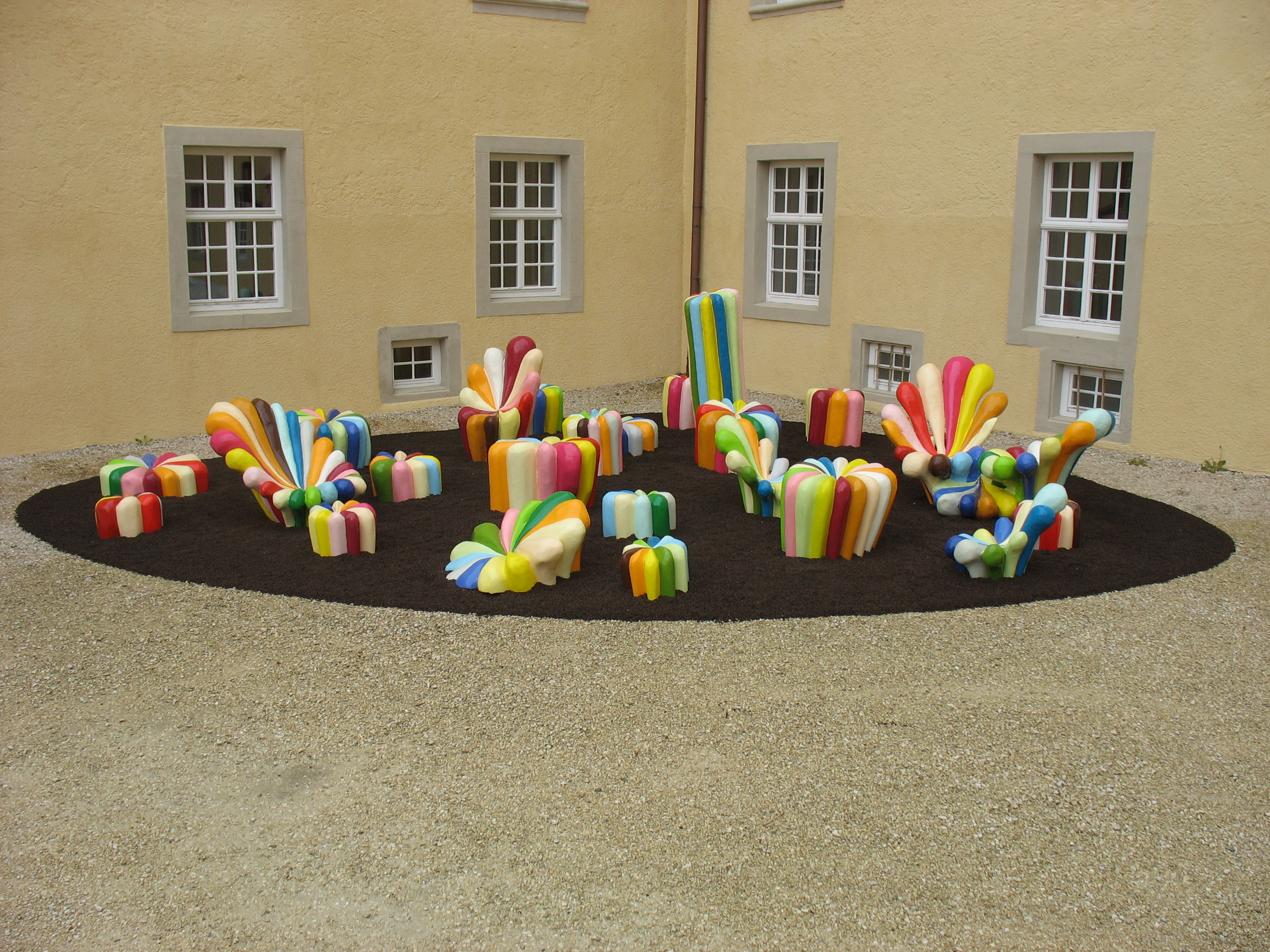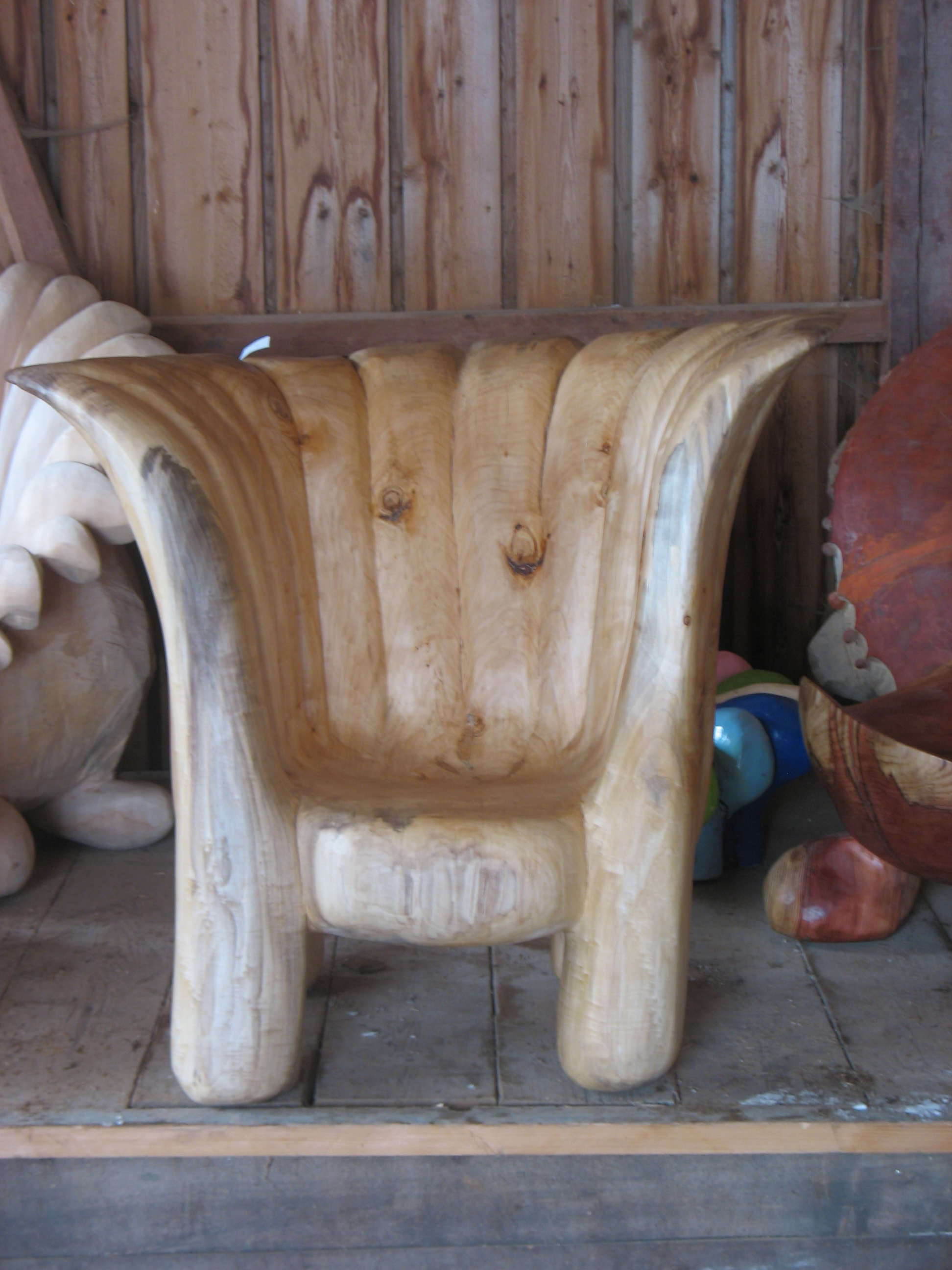 Stuhl- und Sesselskulpturen, Bänke, Hocker und Tische in unterschiedlichen Stilrichtungen,Größen und Holzarten, aus einem Stamm gefertigt, fein geschliffen und geölt, für den Innenraum und überdachten Außenbereich.